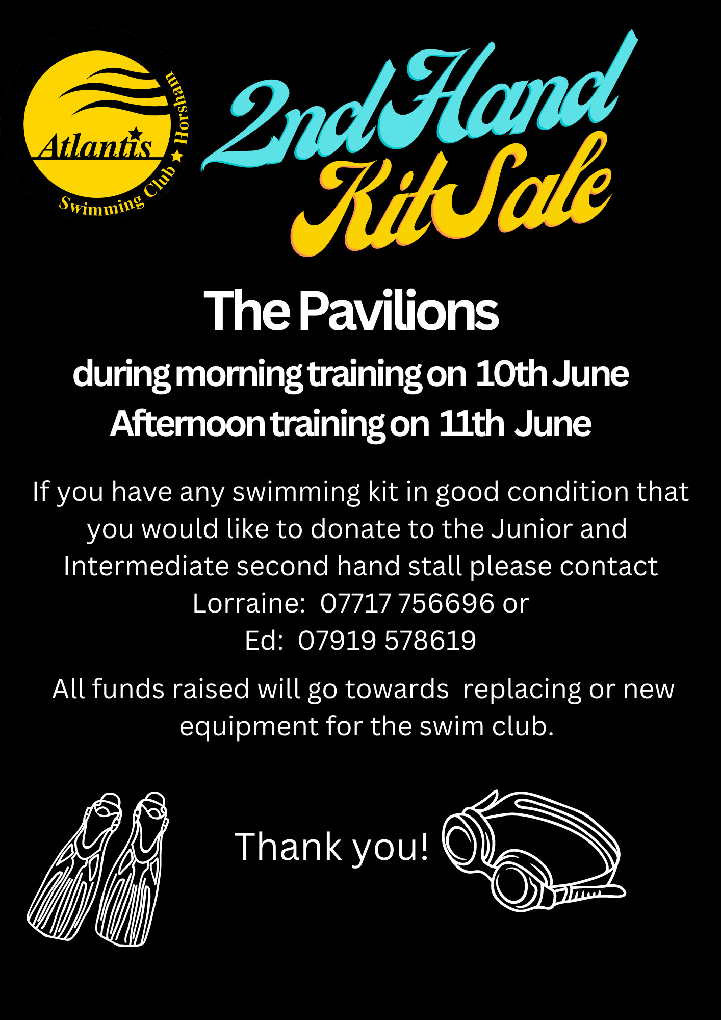 Intermediate and Junior Squad will be running a second hand kit stall over the weekend of the 10th June. Please see attached flier for details. Many thanks.