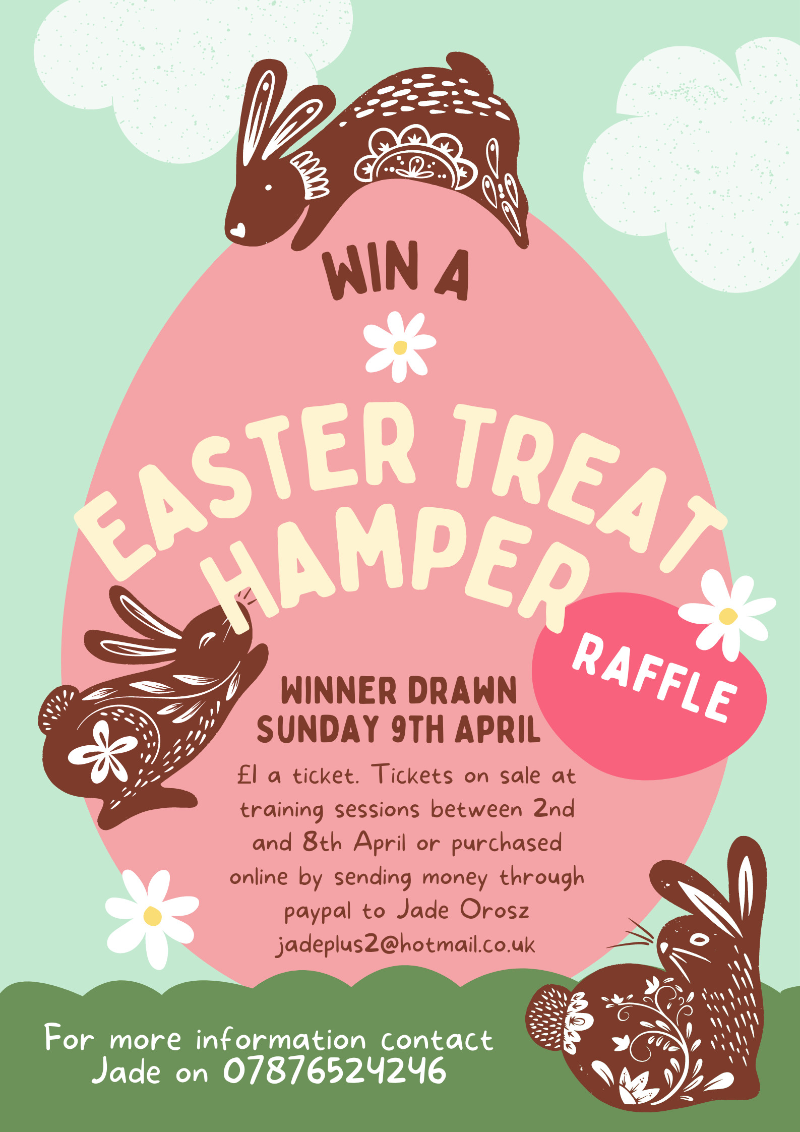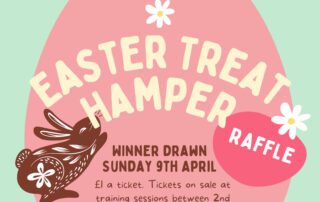 The next events they have planned are an Easter hamper raffle. Tickets will be on sale during training between the 2nd and 8th April with the winner being drawn on the 9th April. Please see the attached poster for more information.