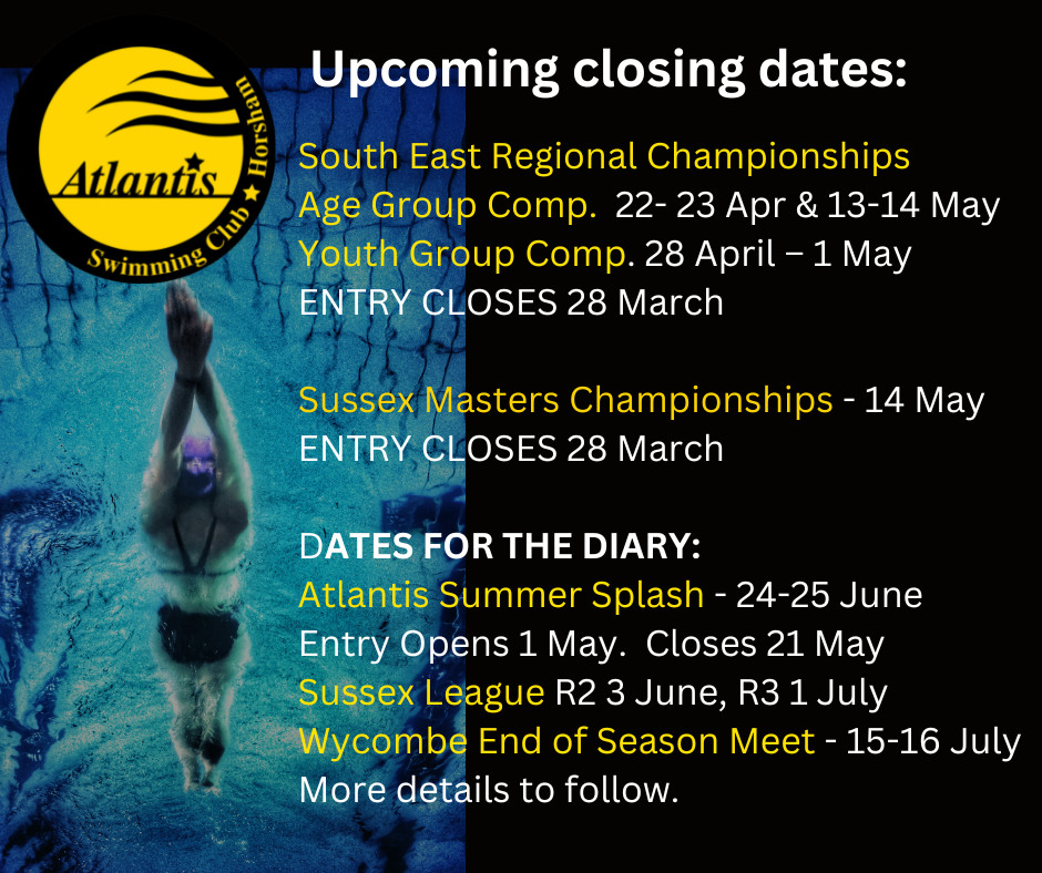 Upcoming meet entry closing dates.